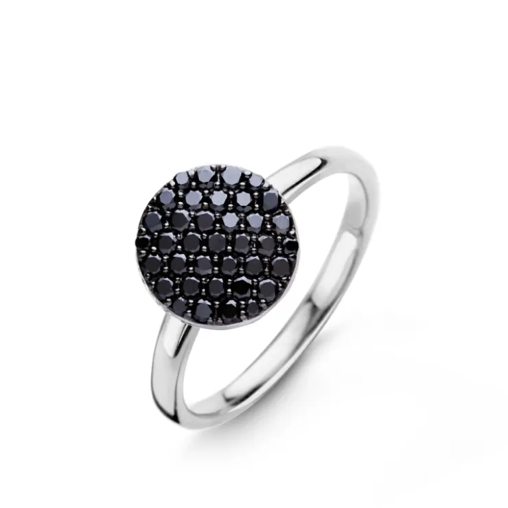 Eolo ring in 18K white gold with black diamonds.
