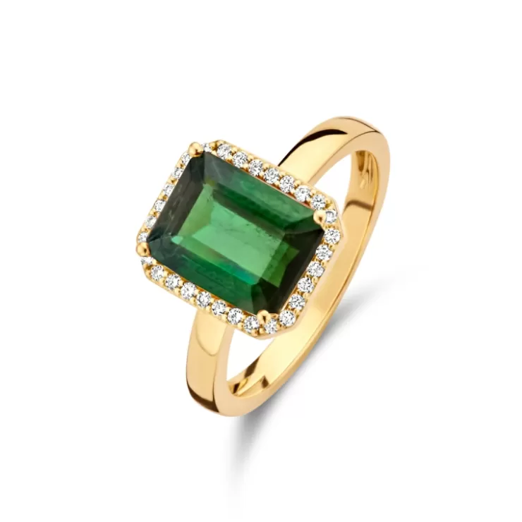 Etna ring in 18K yellow gold with green tourmaline and diamonds.