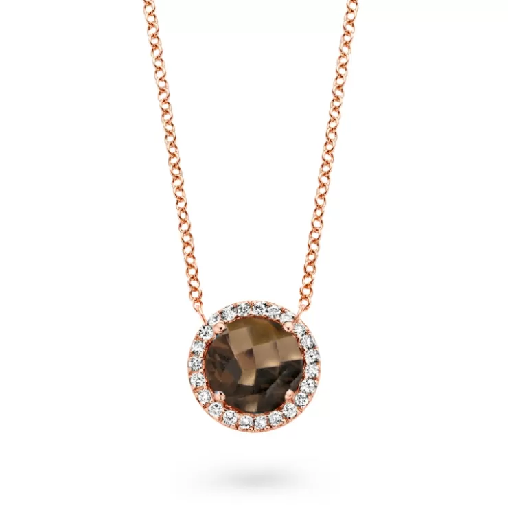 Etna necklace in 18K rose gold with smokey quartz and diamonds.
