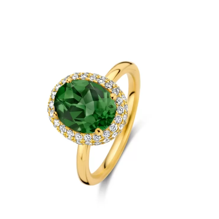 Etna ring in 18K yellow gold with green tourmaline and diamonds.
