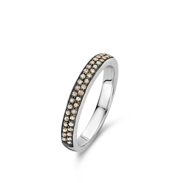 Ischia Basics ring in 18K white gold with brown diamonds.