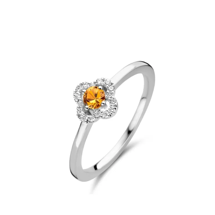 Salina ring in 18K white gold with orange sapphire and diamonds.