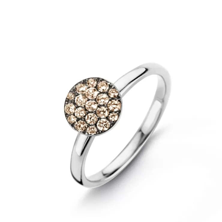 Eolo ring in 18K white gold with brown diamonds.