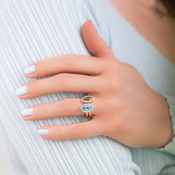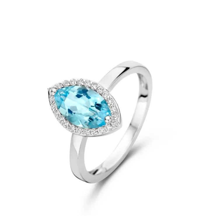 Etna ring in 18K white gold with Sky Blue topaz and diamonds.