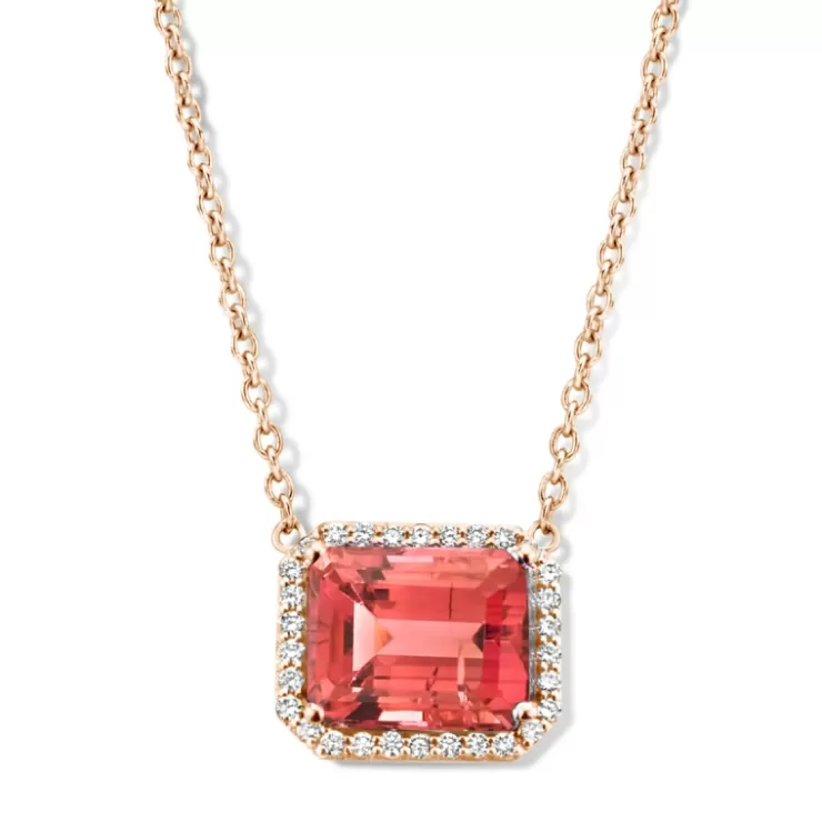 Etna necklace in 18K rose gold with pink tourmaline and diamonds.