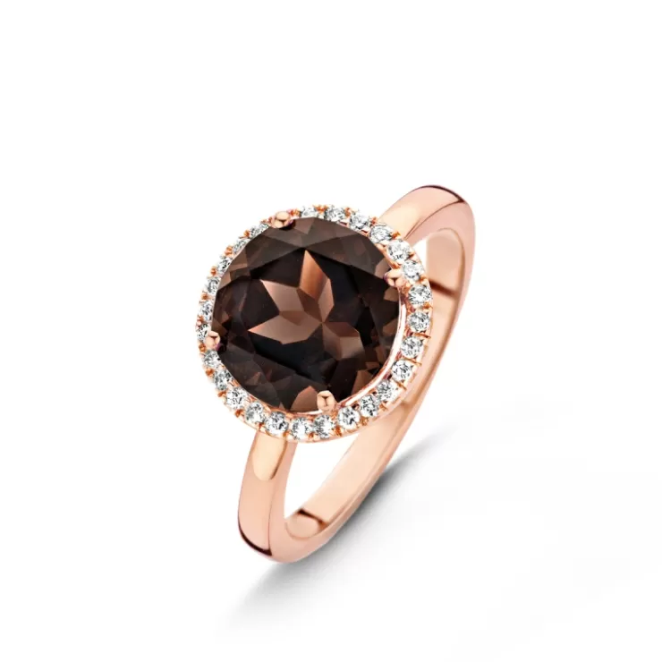 Etna ring in 18K rose gold with smokey quartz and diamonds.
