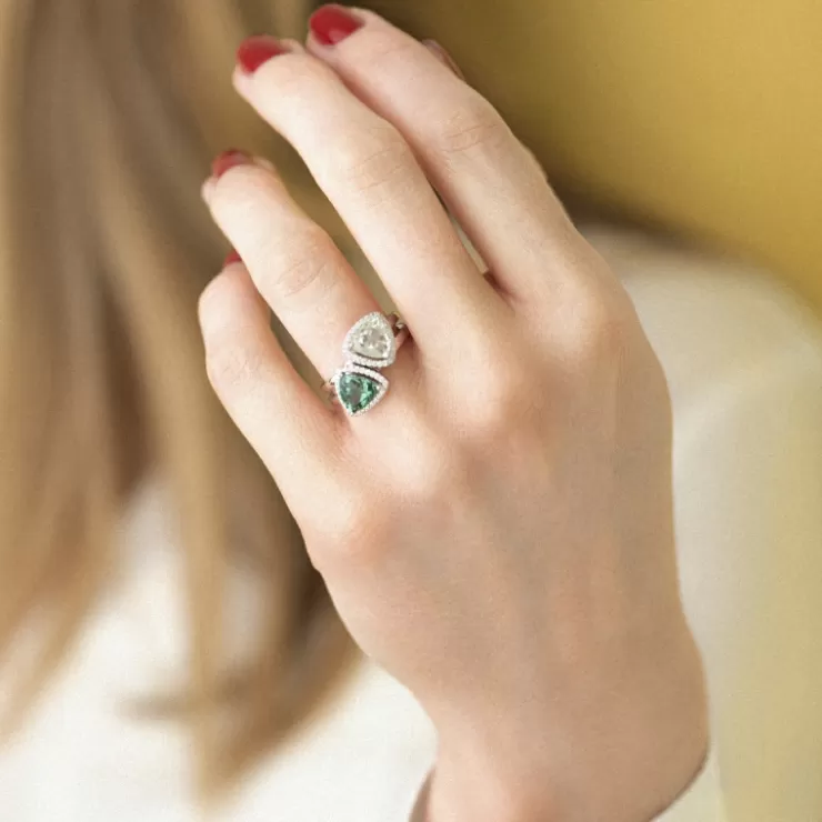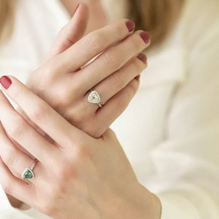 Etna ring in 18K white gold with prasiolite and diamonds.