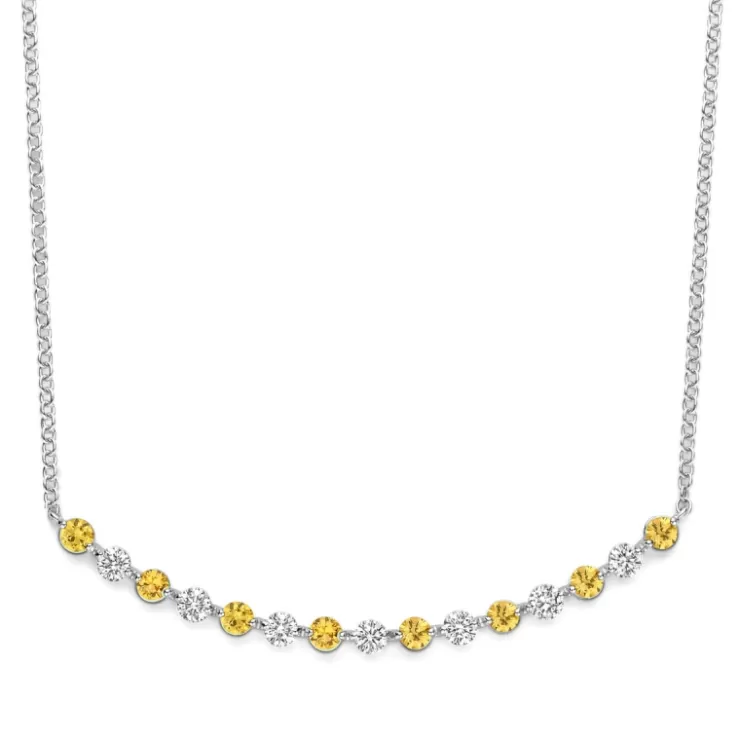 Ischia Basics necklace in 18K white gold with yellow sapphire and diamonds.
