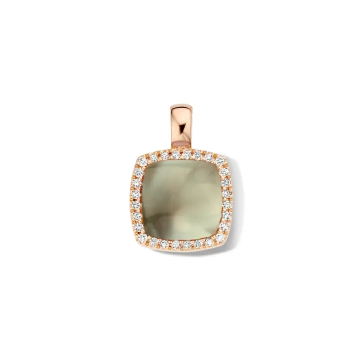 Pantelleria pendant in 18 kt rose gold set with prasiolite on MOP and diamonds.