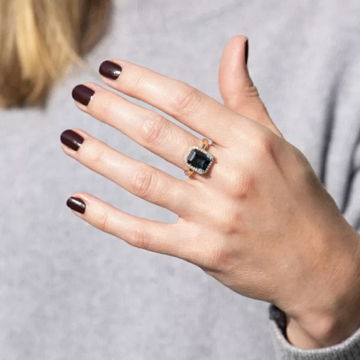 Etna ring in 18K white gold with London Blue topaz and diamonds.