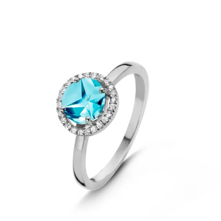 Etna ring in 18K white gold with Swiss Blue topaz and diamonds.