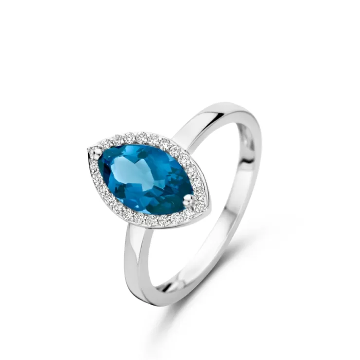 Etna ring in 18K white gold with London Blue topaz and diamonds.