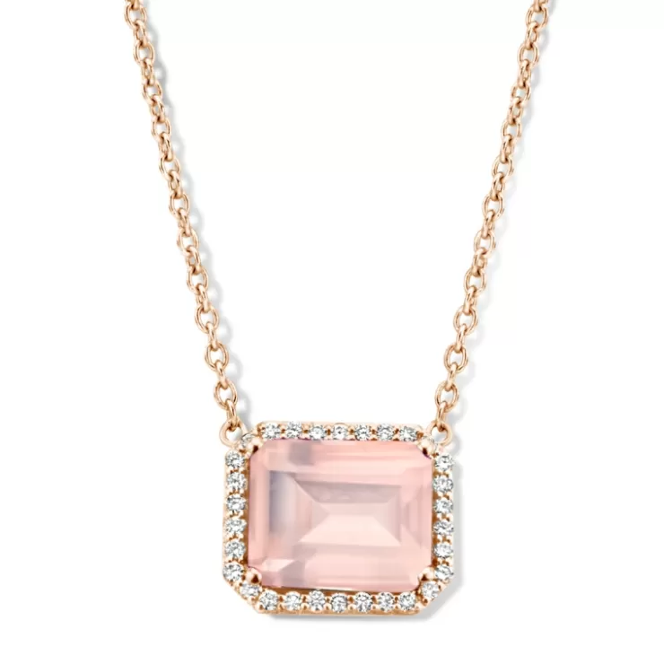 Etna necklace in 18K rose gold with pink quartz and diamonds.