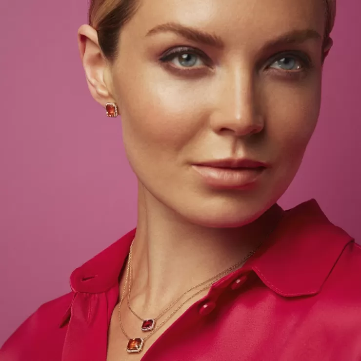 Etna earrings in 18K rose gold with pink tourmaline and diamonds.