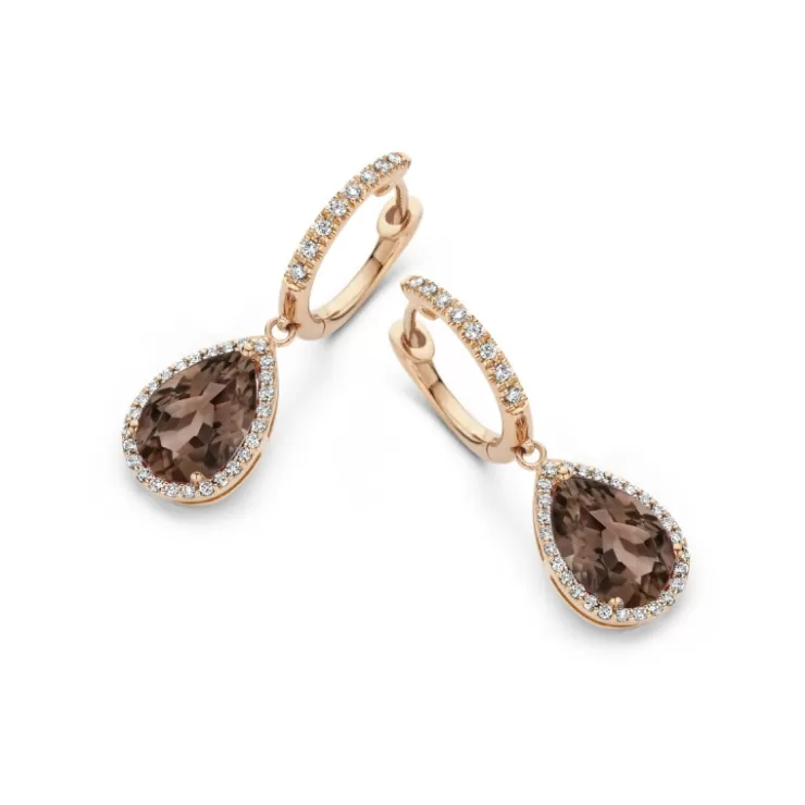 Etna earrings in 18K rose gold with smokey quartz and diamonds.
