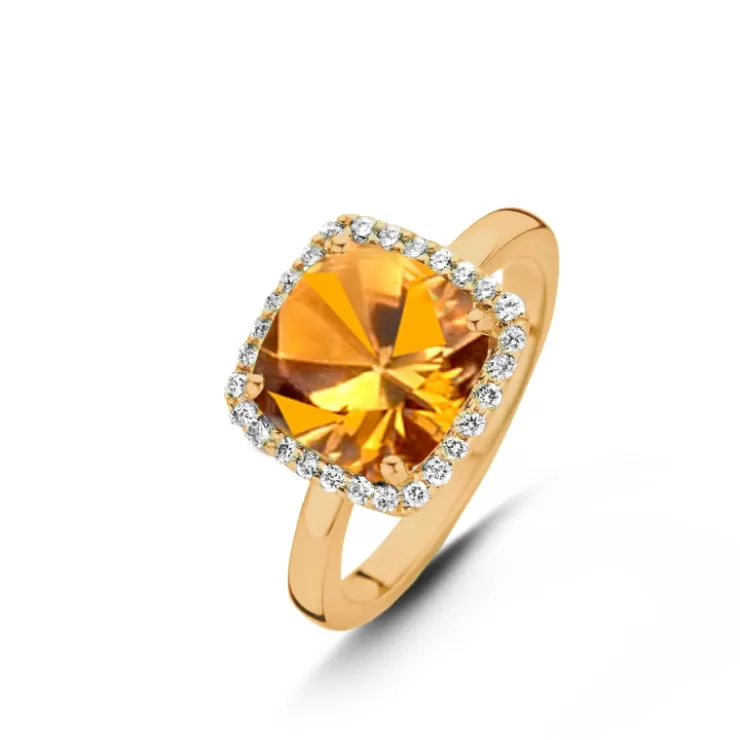 Etna ring in 18K yellow gold with orange citrine and diamonds.
