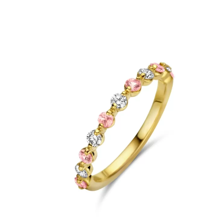 Ischia Basics ring in 18K yellow gold with pink sapphire and diamonds.