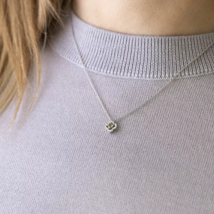 Salina necklace in 18K white gold with green sapphire and diamonds.