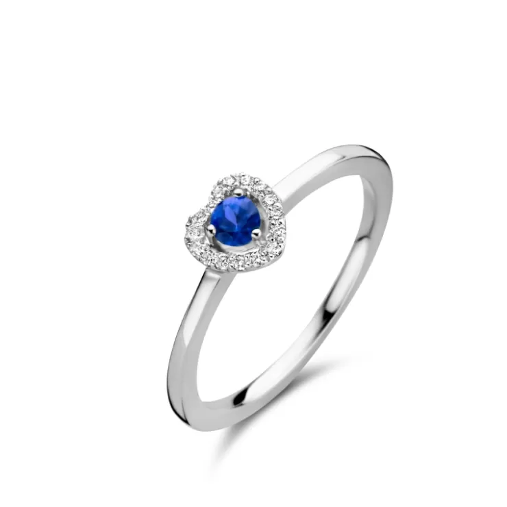 Salina ring in 18K white gold with blue sapphire and diamonds.