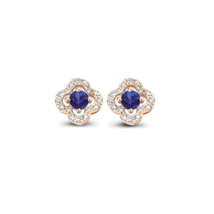 Salina earrings in 18K rose gold with blue sapphire and diamonds.