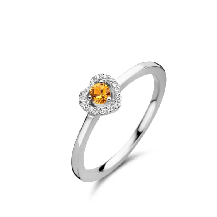 Salina ring in 18K white gold with orange sapphire and diamonds.