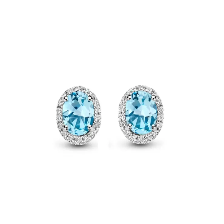 Etna earrings in 18K white gold with Sky Blue topaz and diamonds.