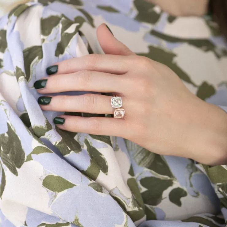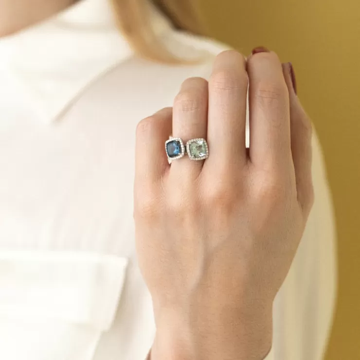 Etna ring in 18K white gold with prasiolite and diamonds.