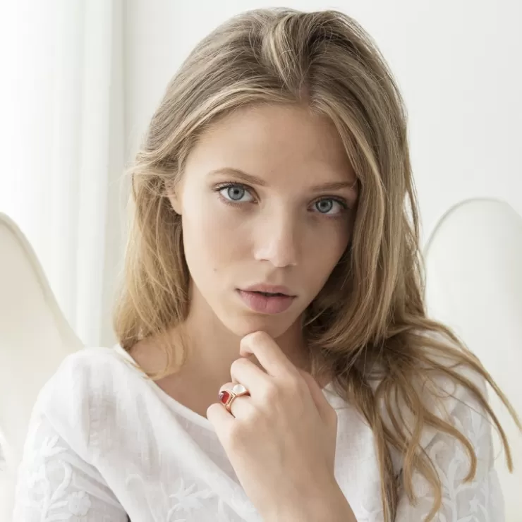 Pantelleria ring in 18K rose gold with white topaz on MOP.