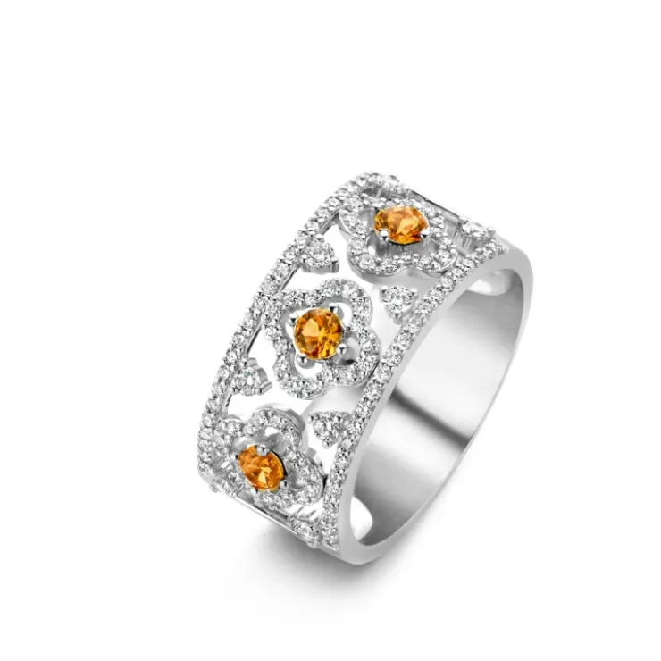 Salina ring in 18K white gold with orange sapphire and diamonds.