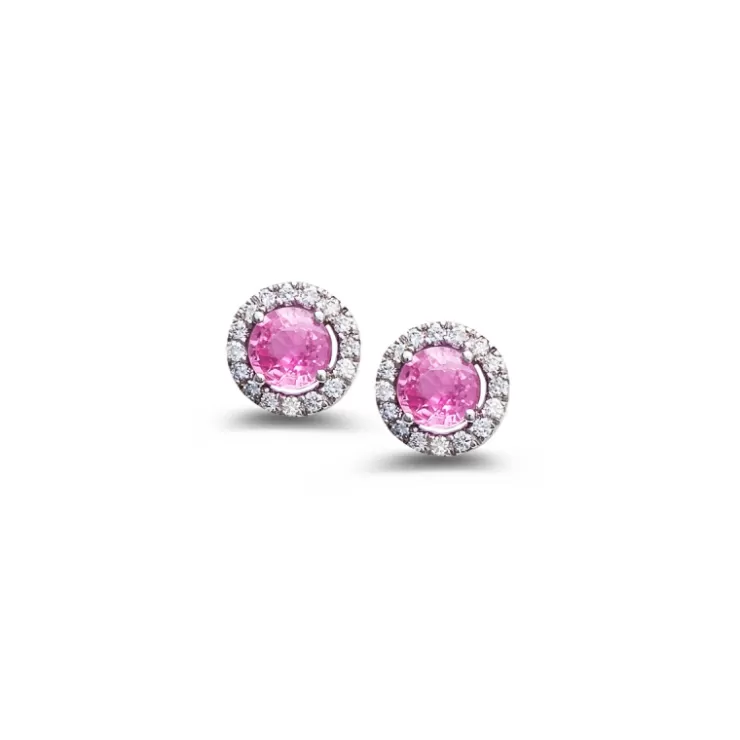 Salina earrings in 18K white gold with pink sapphires and diamonds.
