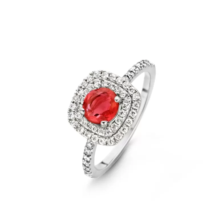 Salina ring in 18K white gold with ruby and diamonds.