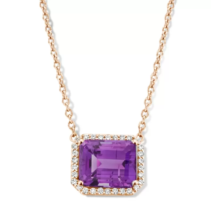 Etna necklace in 18K rose gold with amethyst and diamonds.