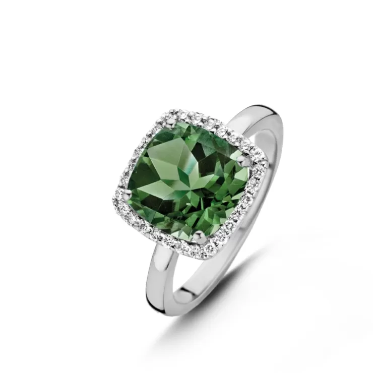 Etna ring in 18K white gold with green tourmaline and diamonds.