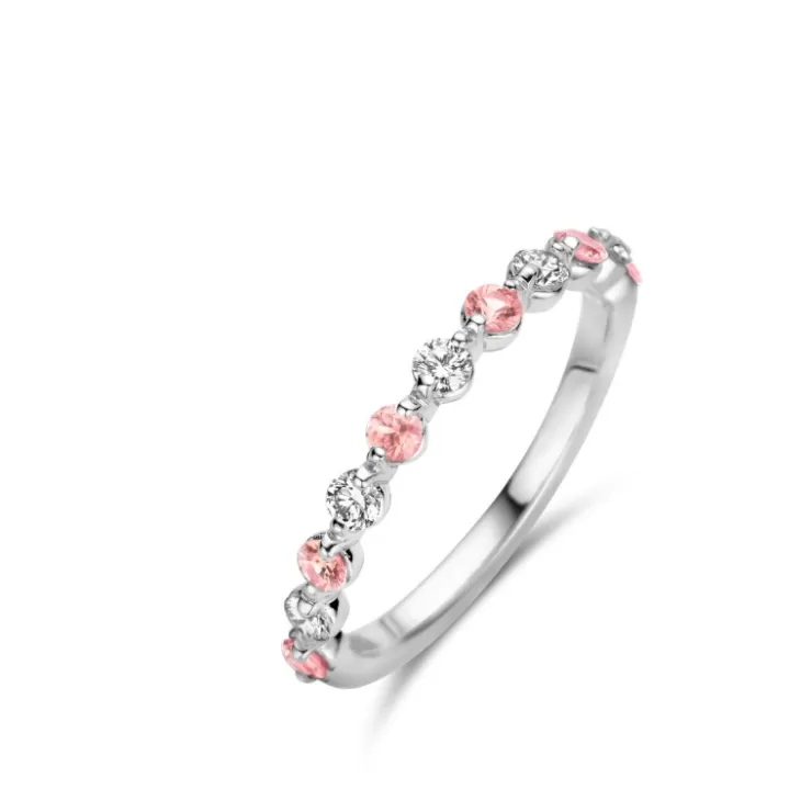Ischia Basics ring in 18K white gold with pink sapphire and diamonds.