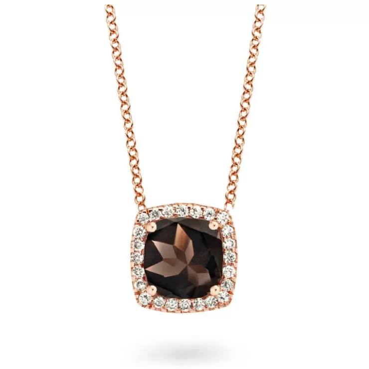 Etna necklace in 18K rose gold with smokey quartz and diamonds.