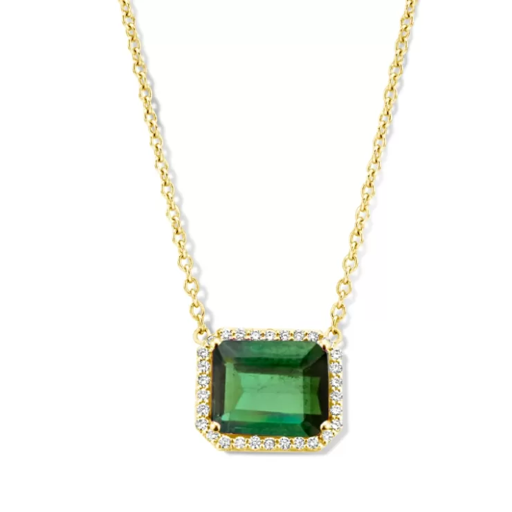 Etna necklace in 18K yellow gold with green tourmaline and diamonds.