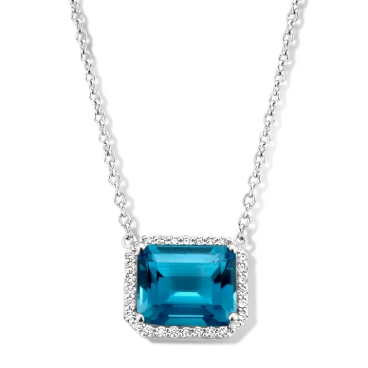 Etna necklace in 18K white gold with London Blue topaz and diamonds.