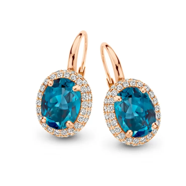 Etna earrings in 18K rose gold with London Blue topaz and diamonds.