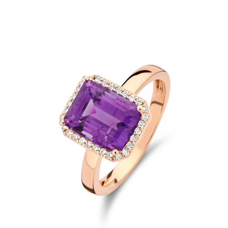 Etna ring in 18K rose gold with amethyst and diamonds.