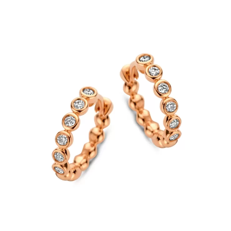Ischia Basics creoles in 18K rose gold with diamonds.