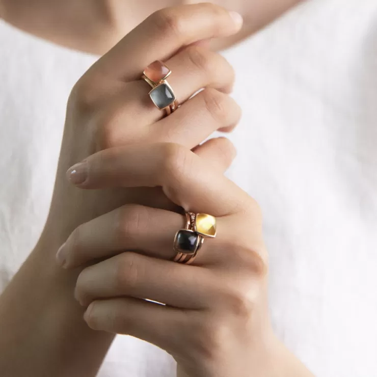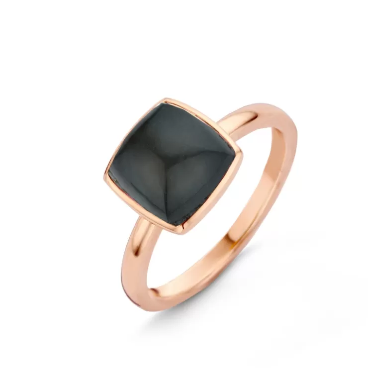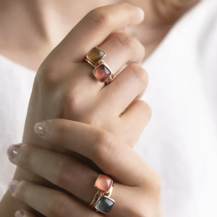 Pantelleria pink gold 750/1000 ring set with quartz on rainbow obsidian.