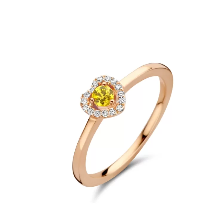 Salina ring in 18K rose gold with yellow sapphire and diamonds.
