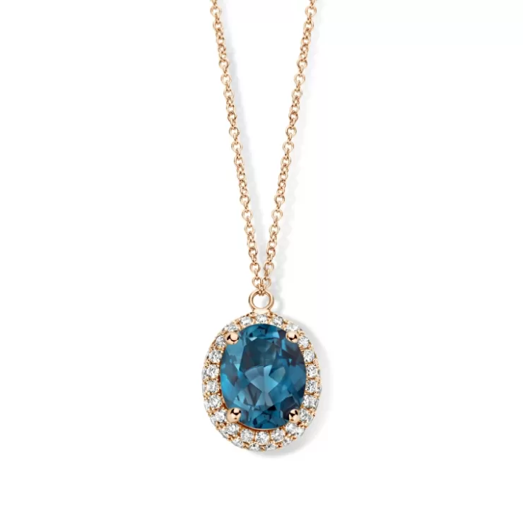 Etna necklace in 18K rose gold with London Blue topaz and diamonds.