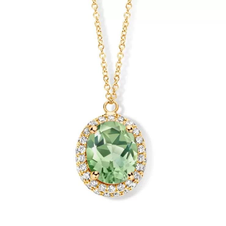 Etna necklace in 18K yellow gold with prasiolite and diamonds.