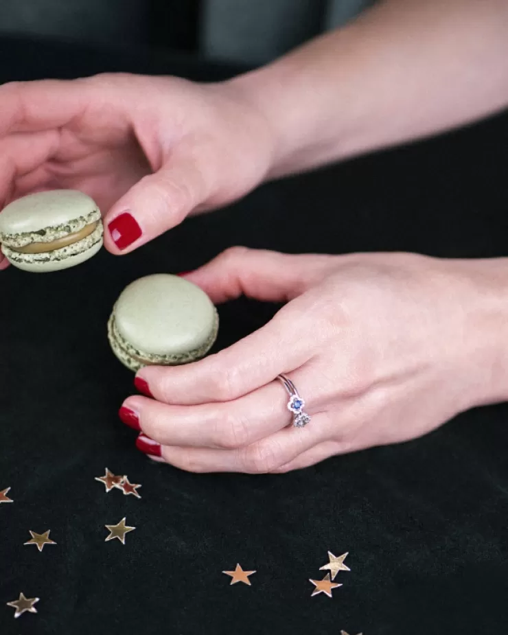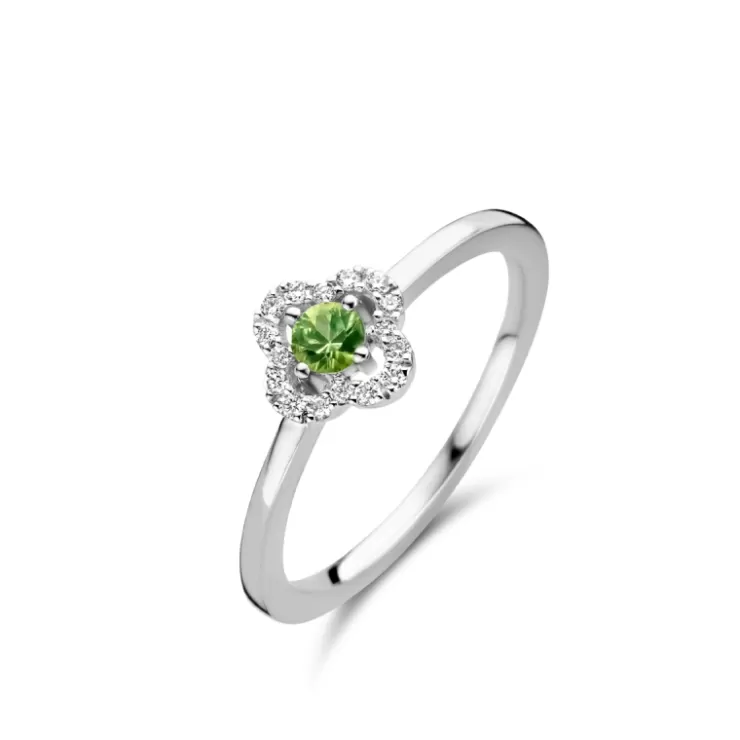 Salina ring in 18K white gold with green sapphire and diamonds.