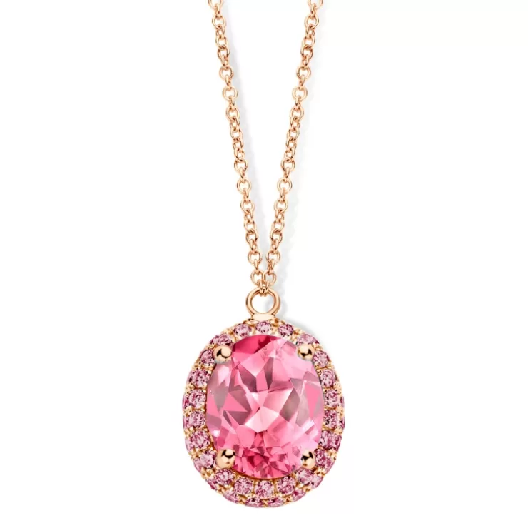 Etna necklace in 18K rose gold with pink tourmaline and pink sapphire.