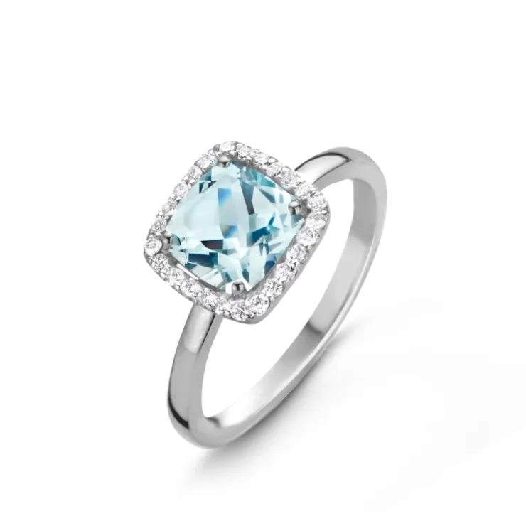 Etna ring in 18K white gold with Sky Blue topaz and diamonds.