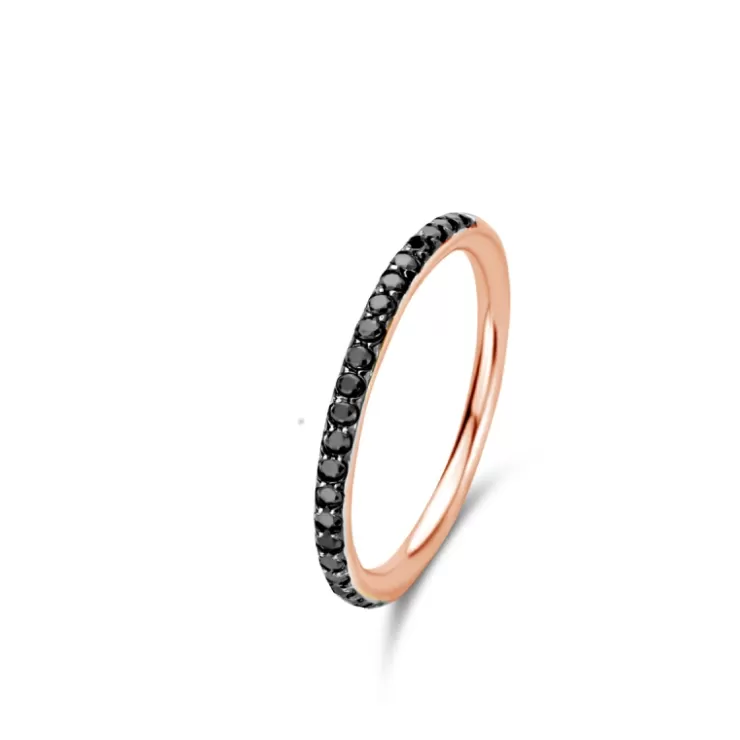 Ischia Basics ring in 18K rose gold with black diamonds.