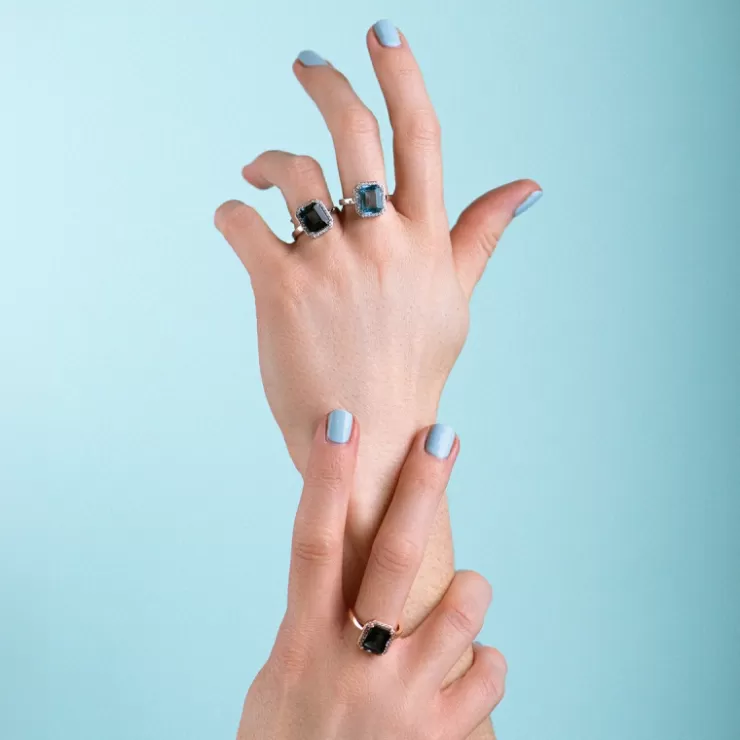 Etna ring in 18K white gold with London Blue topaz and diamonds.