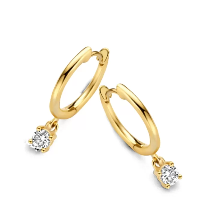 Ischia Basics creoles in 18K yellow gold with diamonds.